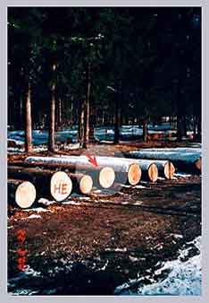 原木首先需要被横向锯成长度为2英尺半的木段,然后这些木段将被纵向劈成两半。这一步骤不采用任何电动工具。 |